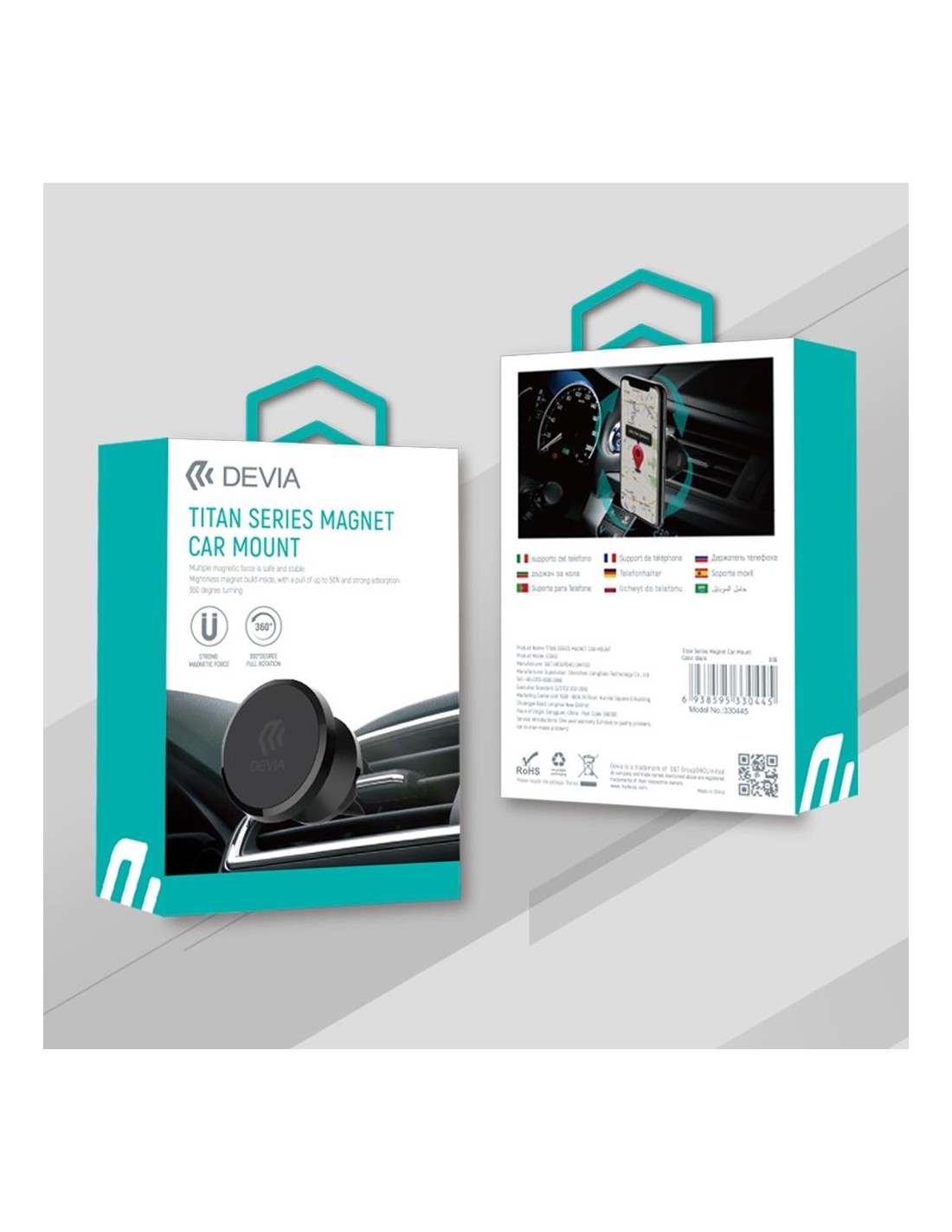 Le support Devia Titan est un support magnétique universel pour grille d'aération de voiture. Ses dimensions réduites s'intègrent parfaitement dans n'importe quel espace. Le kit comprend des autocollants métalliques.