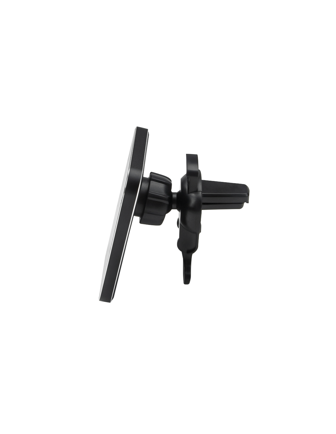 Support voiture de ventilation MACH-100 équipé d'une recharge sans fil. Compatible avec Apple MagSafe. Aimants puissants stabilisent le téléphone, assurant une tenue sécurisée. Charge rapide à 15W. Système anti-casse garantit une fixation sûre en conduite dynamique.