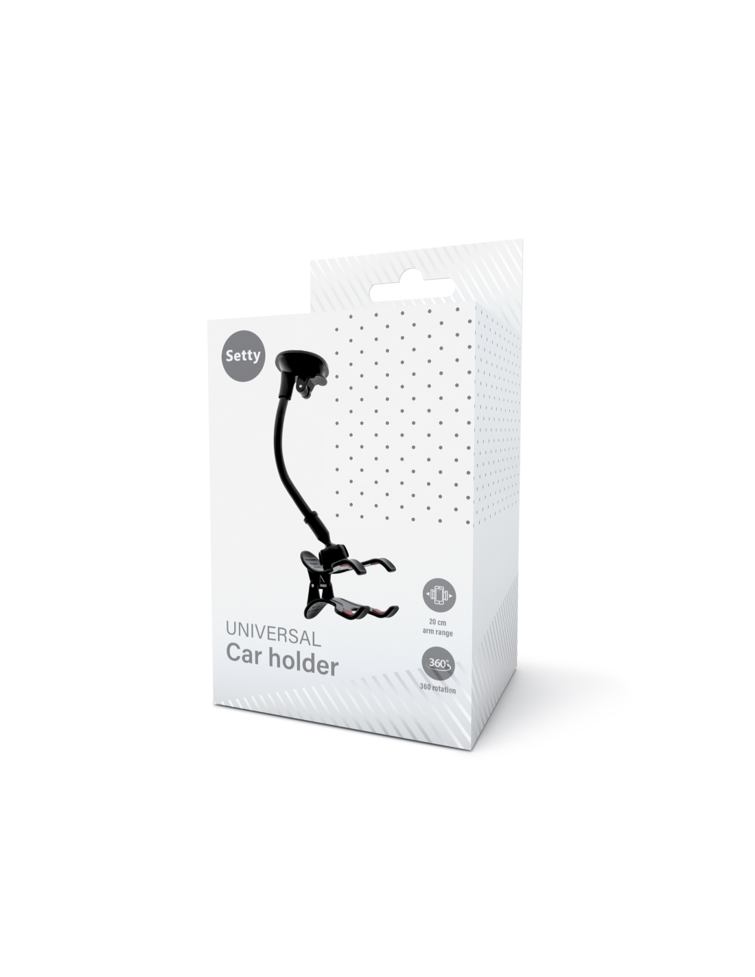 Le support voiture Setty est spécialement conçu pour une utilisation pratique en conduisant. Il s'attache facilement au pare-brise et offre une visibilité optimale. Sa pince universelle convient à la plupart des smartphones. Le bras mesure environ 20 cm de longueur, avec une portée de 11,5 cm. Rotation possible pour un affichage vertical ou horizontal.
