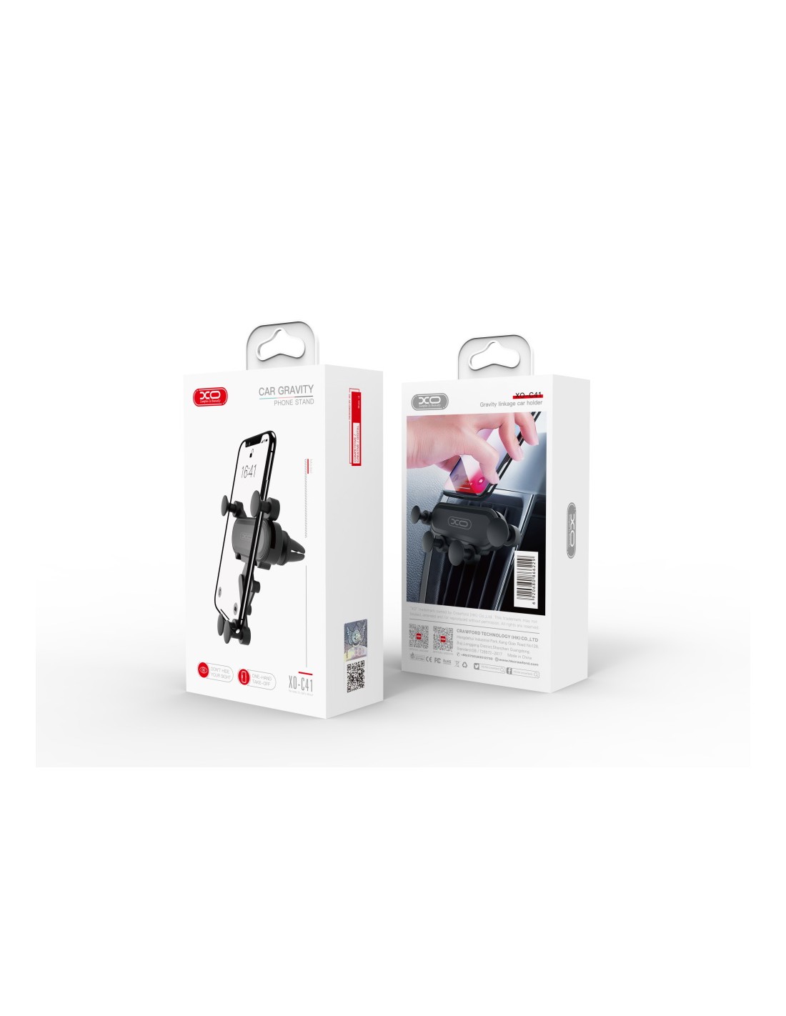 Le support voiture XO C41 est conçu pour se fixer sur une grille d'aération et permet de positionner facilement le téléphone à portée de vue et de main du conducteur. Sa facilité d'utilisation permet d'insérer et de retirer rapidement le téléphone. Aucune information complémentaire n'est fournie.